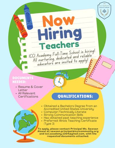 ICCI Academy is currently recruiting elementary, middle and high school teachers and daycare staff.