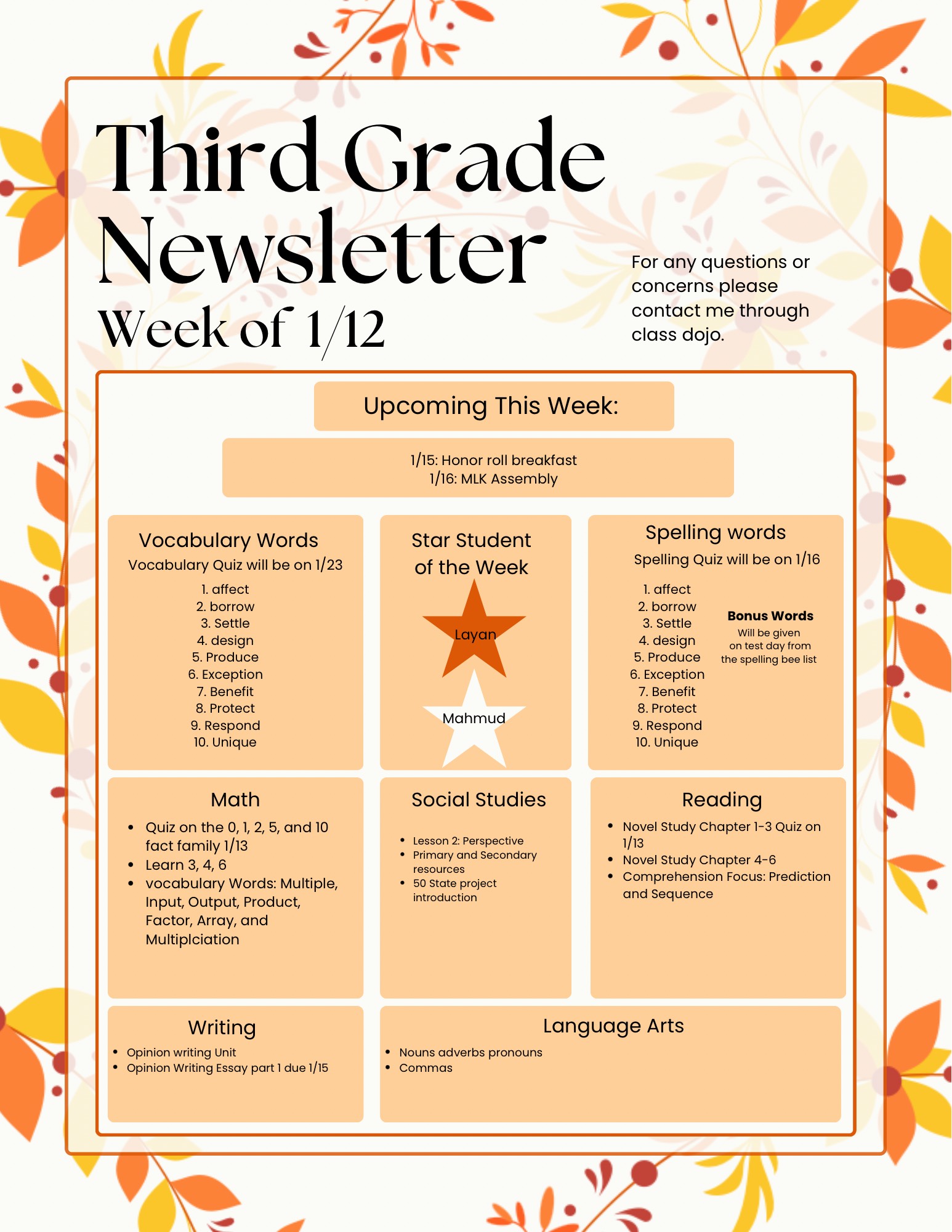 Ms. Farida's 4th Grade Newsletter (png)Download