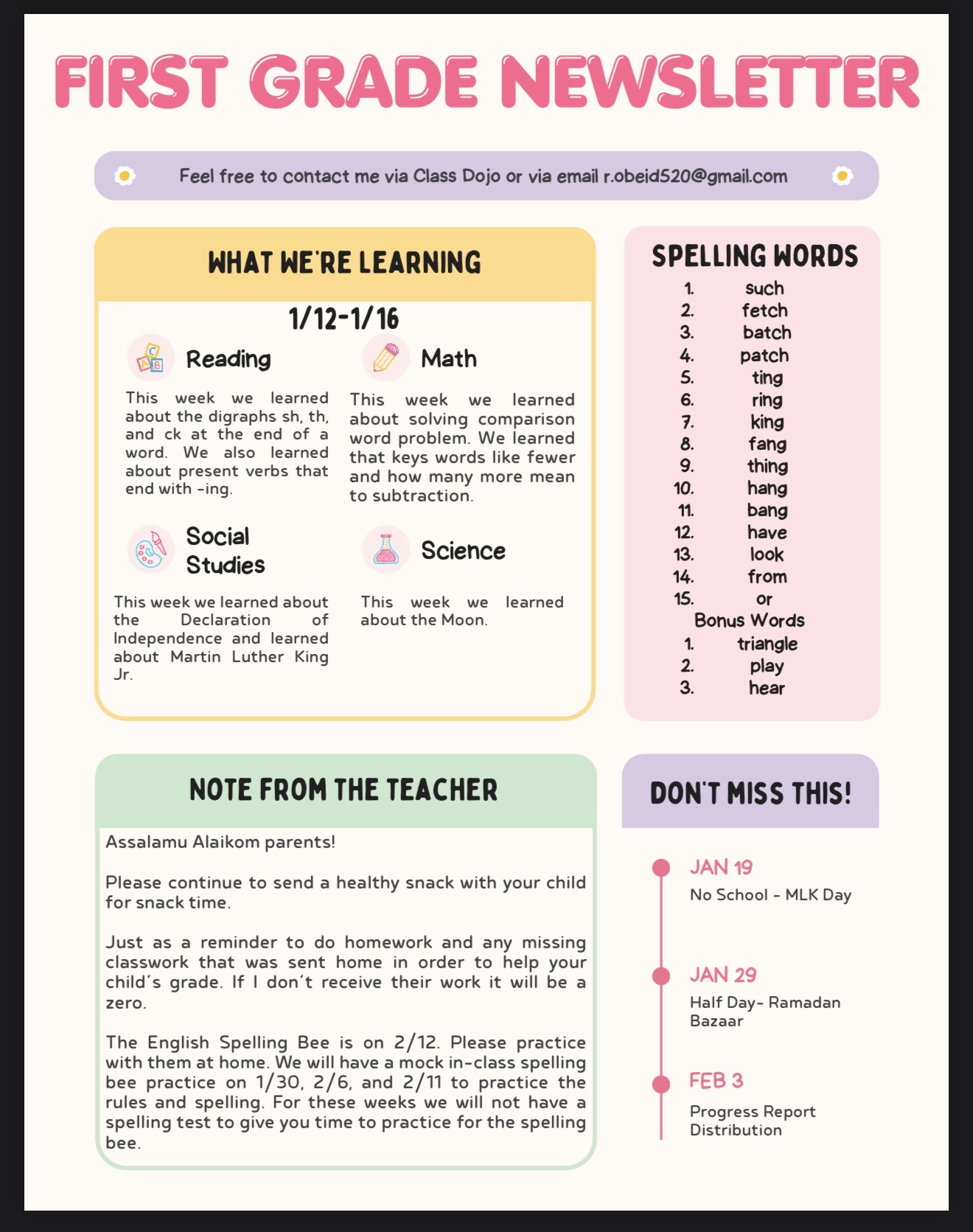 Ms. Farida's 1st Grade Newsletter (png)Download